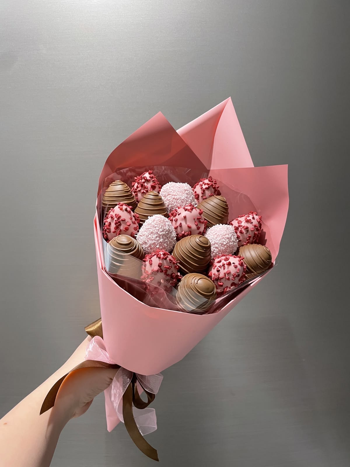 Мечтаете о безупречном десерте, который станет не просто угощением, а ярким украшением вашего торжества? В нашем магазине вы легко подберете элегантные композиции из клубники в шоколаде, которые подчеркнут изысканность вашего мероприятия и подарят незабываемые вкусовые эмоции вашим гостям. Мы создаем десерты, ориентируясь не только на гастрономические тренды, но и на ваши личные пожелания. Наши кондитеры внимательно продумывают каждую деталь: от степени сладости до визуальной подачи. Каждая ягода покрывается шоколадом вручную, чтобы готовый подарок выглядел безупречно и отражал ваше настроение. Вы можете выбрать как классические варианты — клубнику в молочном или темном шоколаде, так и утонченные решения с бельгийским шоколадом, выразительные декоры с ореховой крошкой, кокосовой стружкой или благородным золотым напылением. Особое внимание мы уделяем оформлению набора: подбираем форму упаковки, оттенки лент и декор так, чтобы презент идеально вписался в концепцию вашего события — от лаконичного минимализма до роскошной классики. Для создания композиций используется только отборная, свежая клубника крупного калибра и премиальный бельгийский шоколад без заменителей масла какао. Благодаря этому угощение сохраняет свою хрустящую текстуру, сочность и яркий вкус на протяжении всего торжества и остается приятным сладким воспоминанием о вашем дне.